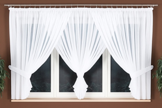Szukasz eleganckiego dodatku do swojego wnętrza? Firana Marietta to doskonały wybór! Wykonana z delikatnego woalu, składa się z trzech części, które można łatwo podpiąć na boki. Dzięki temu firanka ta nie tylko pięknie ozdobi Twoje okno, ale także stworzy przytulną atmosferę w pomieszczeniu. Składa się z 3 osobnych części po 290 cm przed umarszczeniem każda. Pasuje na karnisz do 4,2m.
